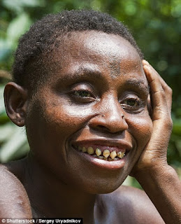 Gambar kanan ialah wanita dari suku kaum Baka di yang ditemui Hutan Simpan Dzanga, Sangha di Republik Afrika Tengah. Mereka mengasah gigi atas sebab budaya melambangkang status dalam masyarakatnya selain meniru haiwan liar.