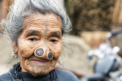 Wanita dari suku Apatani (gambar kanan) di Arunachal Pradesh, India, secara tradisinya mengenakan palam hidung untuk menjadikan diri mereka kelihatan kurang menarik. Suatu ketika dulu, ia bertujuan untuk mengurangkan risiko diculik oleh lelaki dari kaum lain,