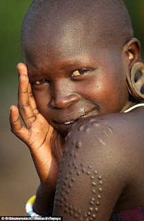 Gambar kiri, seorang lelaki dari wilayah Abyei, Sudan dengan parut di dahinya selepas melakukan rawatan tradisional. Begitu juga dengan parut pada lengan wanita muda di selatan Omo, Ethiopia. Dipercayai parut dari luka yang memang dilakukan oleh bomoh yang merawat mereka bertujuan untuk menyembuhkan penyakit yang dihidapi.