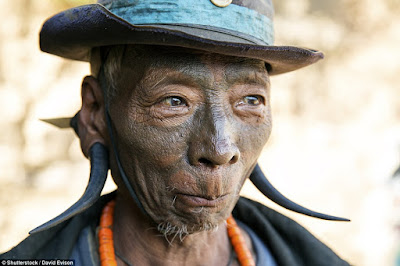 Wajah tatu pada wajah bekas pemburu kepala di Kampung Longwa di Nagaland, India. Sehingga tahun 1960-an, memburu kepala musuh adalah simbol kebanggaan dan keberanian lelaki. Walaupun amalan itu sudah dihentikan, tatu pada wajah pemburu kepala ini pastinya meninggalkan kebanggan kepada lelaki itu.